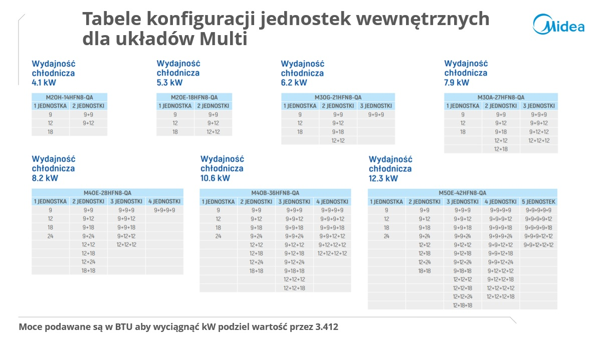 | Liczba jednostek | Dostępne konfiguracje (kW) |